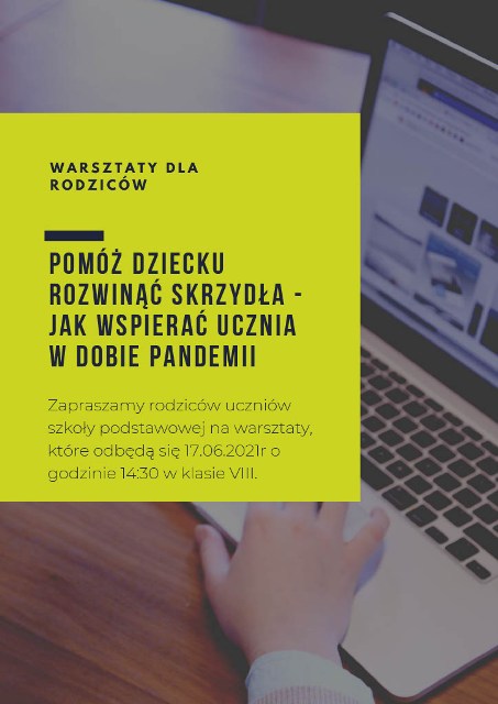 W dniu 17.06.2021r. o godzinie 14:30 odbędą się warsztaty dla rodziców uczniów szkoły podstawowej. Mimo iż rok szkolny zbliża się ku końcowi nie przestajemy być rodzicami. Dlatego już dziś dajmy wsparcie sobie i dzieciom. Warsztaty poprowadzi pedagog szkolny.