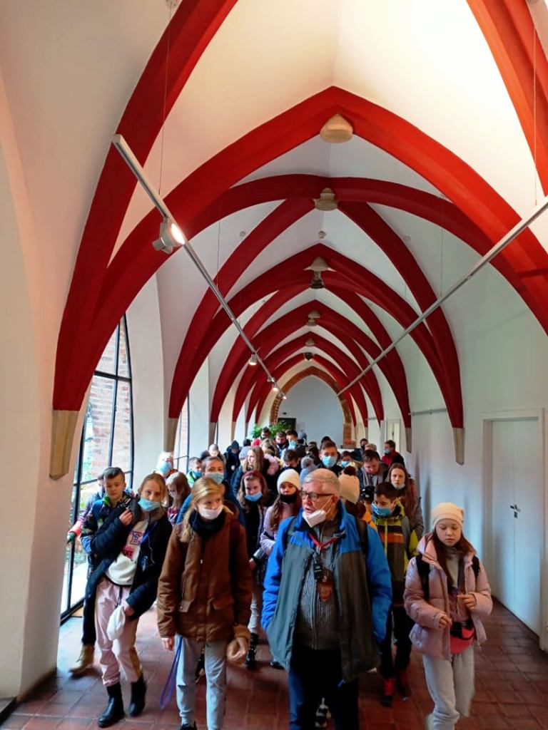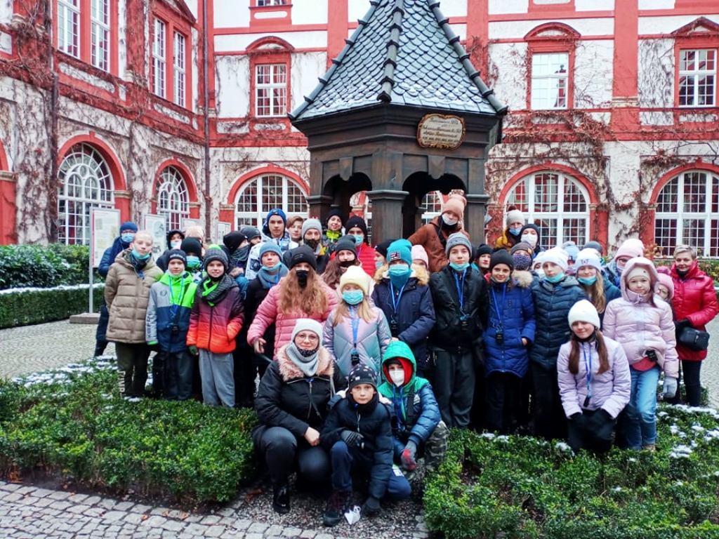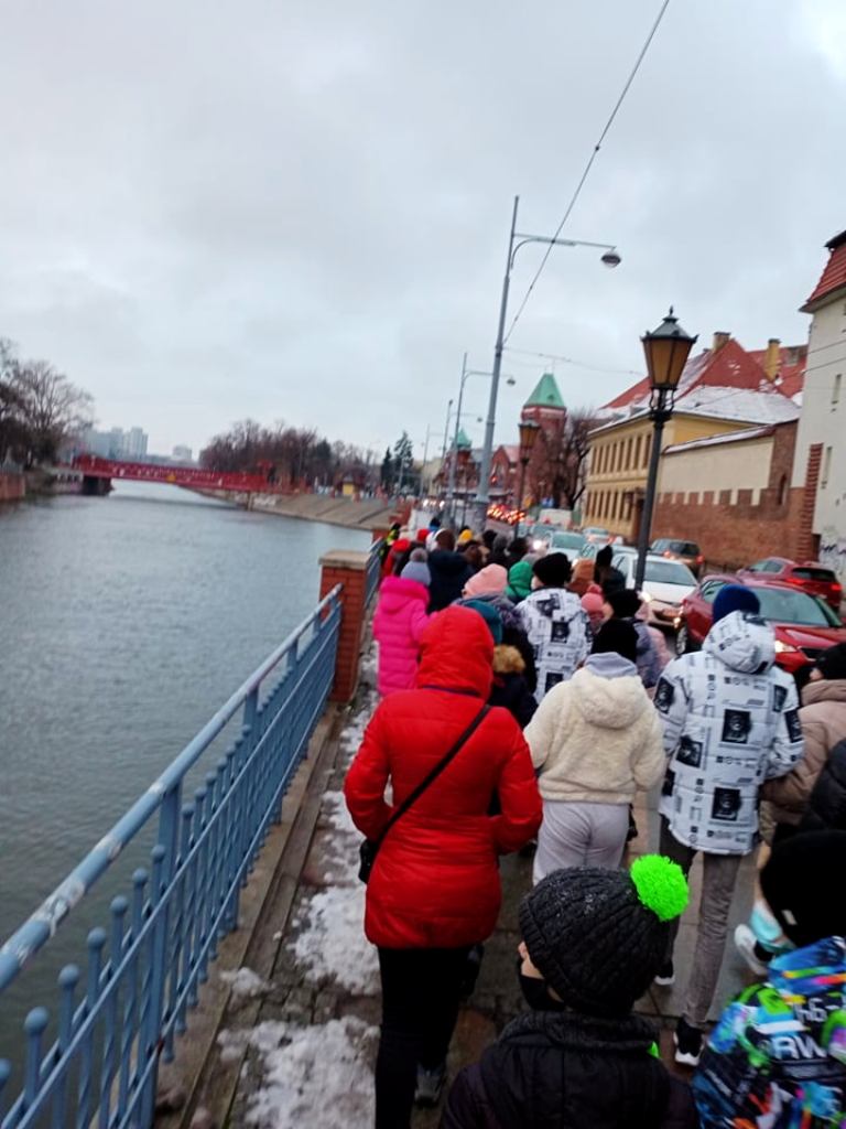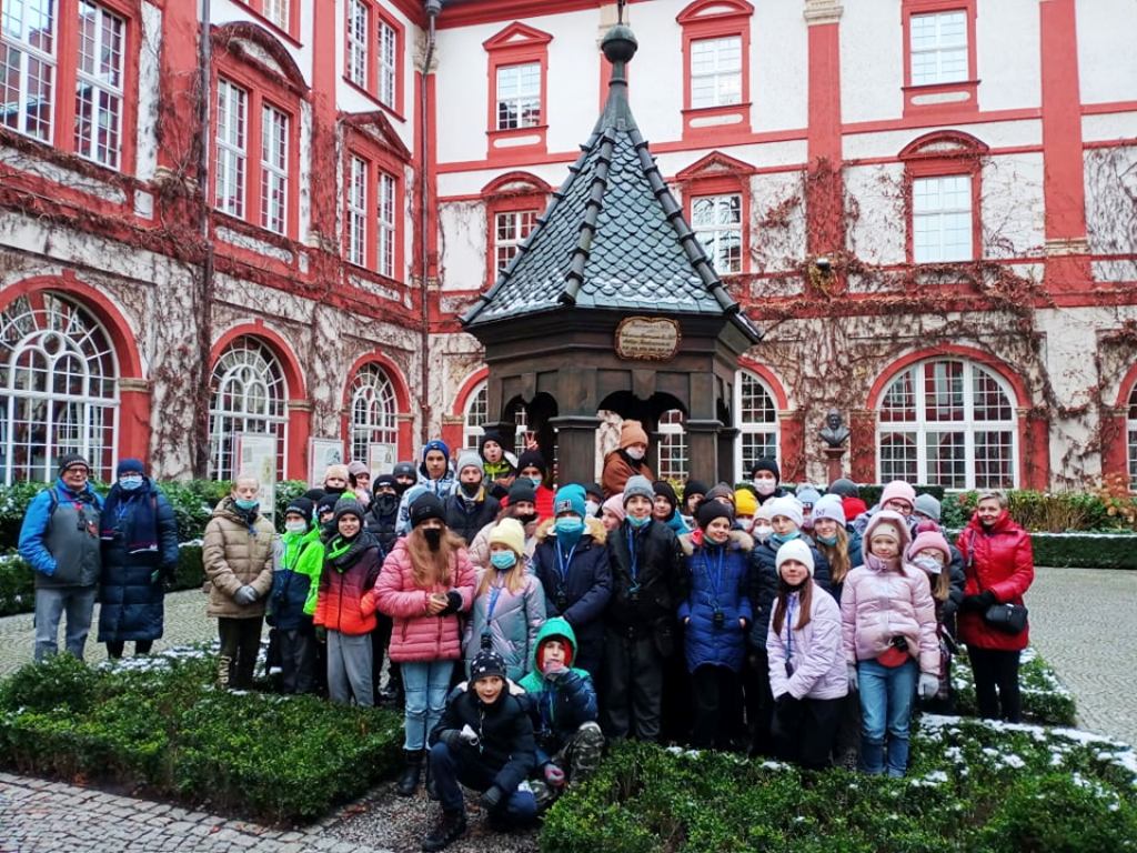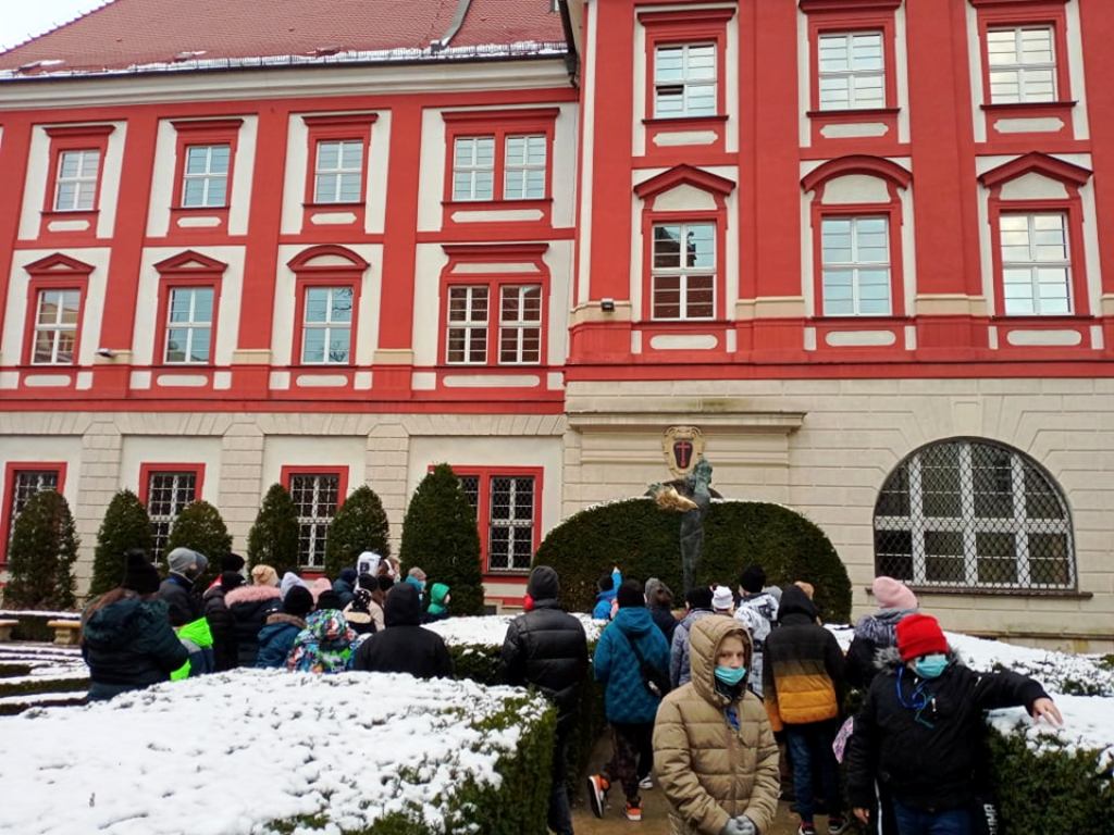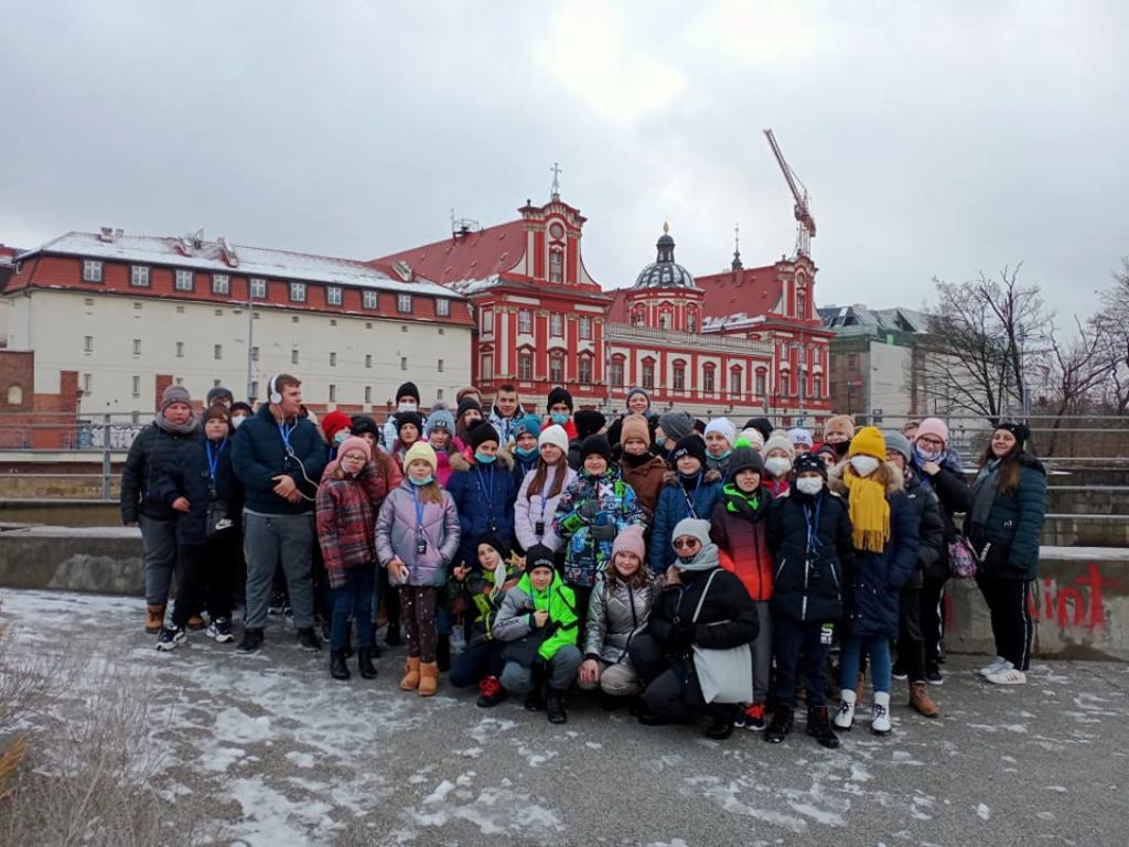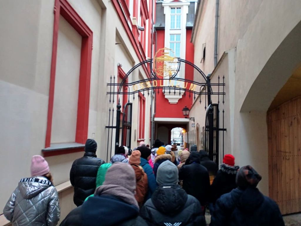Wyjechaliśmy 29 listopada 2021 roku o godzinie 6.15. Na miejsce dotarliśmy tuż po godzinie 13.00. Pierwszym punktem programu było zwiedzanie Muzeum Mineralogicznego Uniwersytetu Wrocławskiego. Mogliśmy z bliska przyjrzeć się przeróżnym kamieniom szlachetnym i ozdobnym, minerałom oraz meteorytom. Następnym punktem było poznanie dziedzictwa kulturowego i historycznego Wrocławia poprzez zwiedzanie Ostrowa Tumskiego i Rynku. Zobaczyliśmy dawną kaplicę zamku piastowskiego, jedyny w Polsce pomnik papieża Jana XXIII, bramę "kluskową", katedrę św. Jana Chrzciciela, dwupoziomową kolegiatę św. Krzyża, statuę św. Jana Nepomucena, kościół NMP na Piasku. Spacerowaliśmy bulwarem Piotra Włostowica. Przeszliśmy też przez most Tumski, zwany mostem miłości, na którym wisi mnóstwo kłódeczek zawieszonych przez zakochane pary. Po drodze szukaliśmy miniaturowych krasnali, które "rozrzucone" są po całym Wrocławiu. Na koniec dnia zjedliśmy obiadokolację i pojechaliśmy do Hostelu Wratislavia. Tak minął nam dzień pierwszy.
