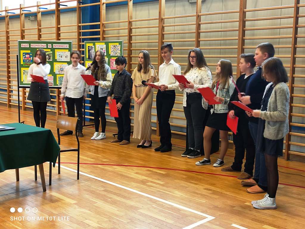 W ramach obchodów DBI w naszej szkole na lekcji informatyki uczniowie realizowali cykl zajęć dotyczących internetowego bezpieczeństwa. W kl. 4-6 przeprowadzono zajęcia wg scenariuszy i filmów - „3,2,1 Internet”. W wyprawie po Internecie przewodnikiem był Krzysztof Hołowczyc. Oglądając kreskówki poświęcone różnym formom internetowych zagrożeń uczniowie dowiedzieli się jak bezpiecznie korzystać z sieci, jak chronić swoją prywatność, a także jakie zagrożenia niosą z sobą internetowe znajomości. W klasach 7 i 8 przeprowadzono lekcje wg scenariusza "Gdzie jest Mimi?", przygotowanego przez Fundację Dzieci Niczyje w ramach programu „Dziecko w Sieci”. Materiał dotyczył profilaktyki przemocy rówieśniczej, z naciskiem na sytuacje, w których wykorzystywany jest internet. Młodzież poznała, gdzie przebiega granica pomiędzy żartem, a aktem przemocy. Dowiedziała się jak należy reagować na zagrażające sytuacje, gdzie szukać pomocy i jakie konsekwencje grożą sprawcom cyberprzemocy. Na koniec lekcji młodzi użytkownicy wypowiadali się i przytaczali argumenty za i przeciw Internetowi. Doszli do wniosku, ze Internet jest bardzo przydatnym narzędziem, należy jednak odpowiedzialnie z niego korzystać.