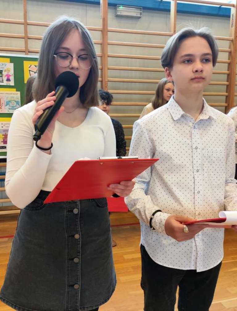 Podsumowaniem akcji był apel, na którym zaprezentowali się uczniowie z klasy 6 i 7.