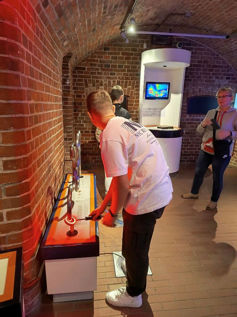 Drugi dzień naszej wycieczki (3 października 2024) rozpoczęliśmy od zwiedzania Centrum Nauki Hevelianum w Gdańsku. To miejsce, w którym można się spotkać z nauką i historią. Podziwialiśmy tam sterowane gestem słońce, gabinet Jana Heweliusza. Mogliśmy zobaczyć burzę piaskową, zorzę polarną, rafę koralową, wybuch gejzeru, weszliśmy też do igloo i symulatora wiatru. Zwiedziliśmy kilkadziesiąt stanowisk na dwóch poziomach. Służą one do obserwacji, doświadczeń, a także do wywoływania różnorodnych zjawisk. Na wystawie o zamianie różnych form energii i reenergii mogliśmy znaleźć odpowiedź na pytania: czym jest ciepło, czy wiązka światła wprawi w ruch samolot i jak zanieczyszczenie naszej planety widać z perspektywy kosmosu. Następnym punktem programu było Akwarium Gdańskie. Na początku wysłuchaliśmy ciekawej opowieści połączonej z prezentacją nt. zwierząt mieszkających w akwarium. W kilkudziesięciu akwariach, rozlokowanych na trzech piętrach, mogliśmy obejrzeć ponad dwieście gatunków ryb, płazów, gadów i bezkręgowców. Odwiedziliśmy osiem sal ekspozycyjnych, każda z nich to niezwykle ciekawy świat różnorodnych istot morskich. Następnie zwiedziliśmy trójmasztowy żaglowiec "Dar Pomorza". Został on zbudowany w 1909 roku. Od lat 30-tych XX w. do lat 80-tych służył Polskiej Marynarce Handlowej jako jednostka szkoleniowa dla studentów Szkoły Morskiej w Gdyni. Obecnie to statek-muzeum, cumujący przy gdyńskim Nabrzeżu Pomorskim. Jest jednym z najważniejszych zabytków polskiego dziedzictwa morskiego ubiegłego wieku. Wejście na główny pokład i do wnętrz statku pozwala poznać z bliska warunki życia i pracy polskich marynarzy oraz kadry oficerskiej. W zabytkowych przestrzeniach można zobaczyć np. salon komendanta, szpital, stanowiska sterowe czy maszynownię. Po powrocie do hotelu zjedliśmy obiadokolację. Wieczór spędziliśmy aktywnie - na basenie, siłowni i sali zabaw. Mimo iż dzień był deszczowy, to wrażenia z tego dnia na długo pozostaną w naszej pamięci.