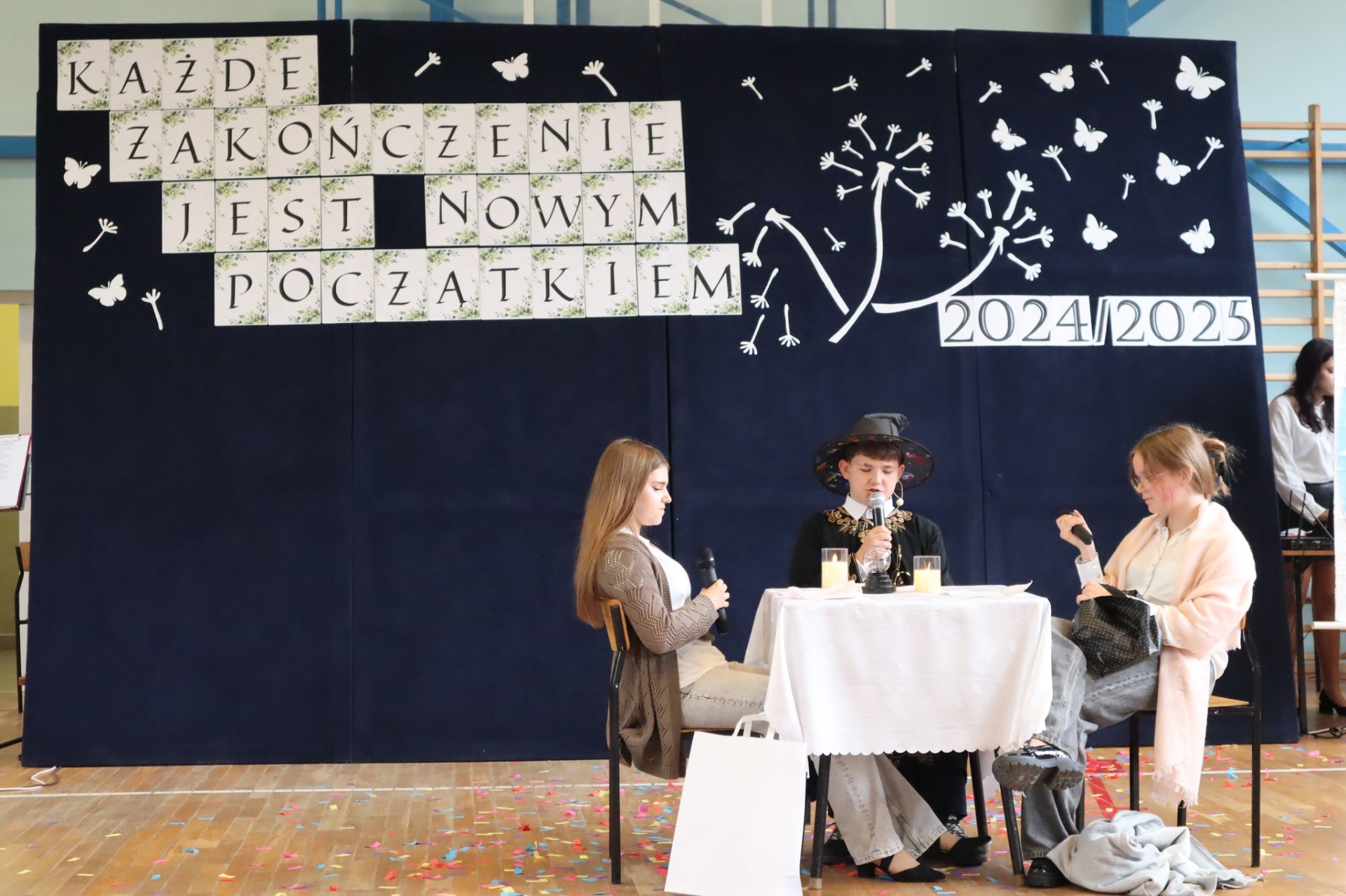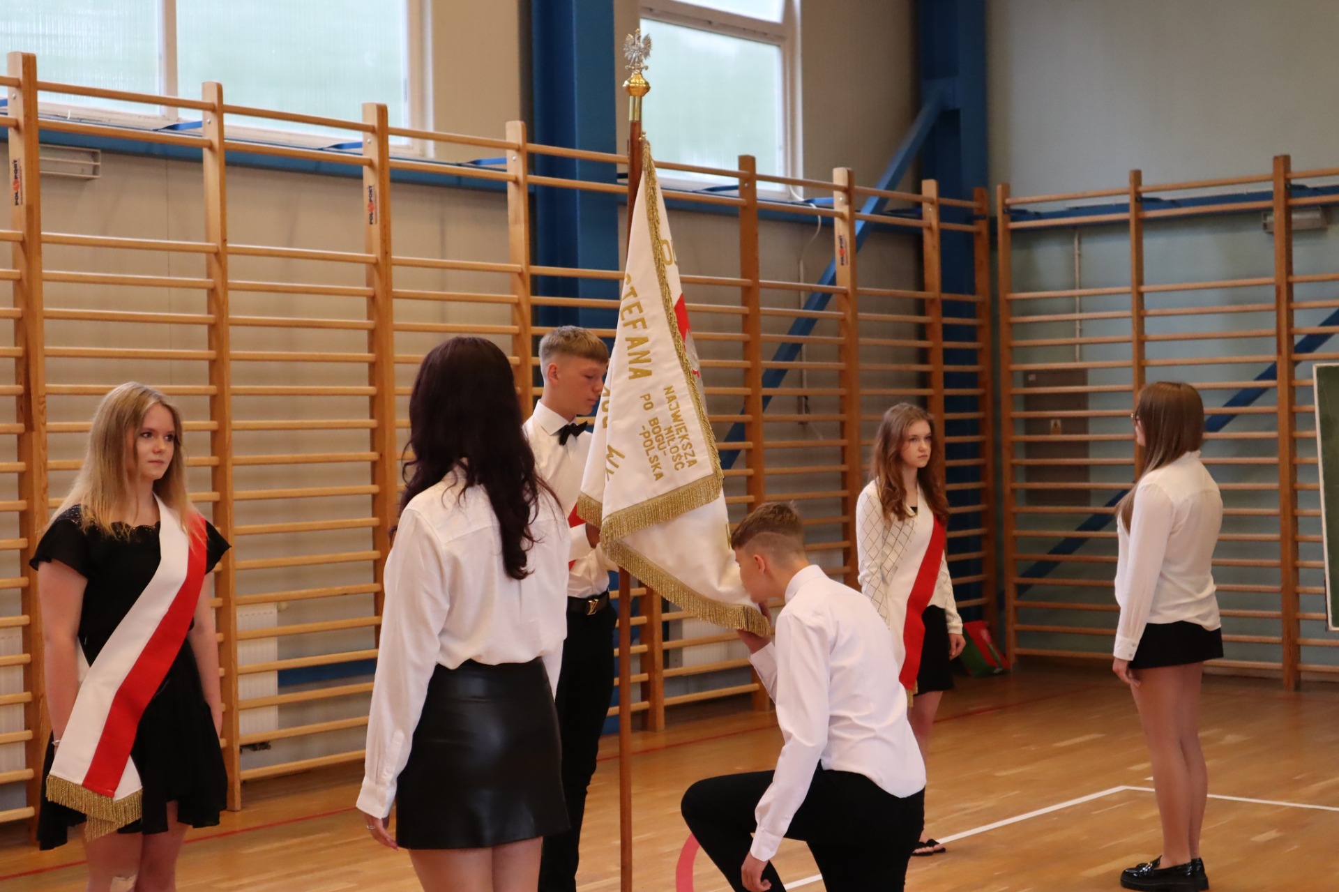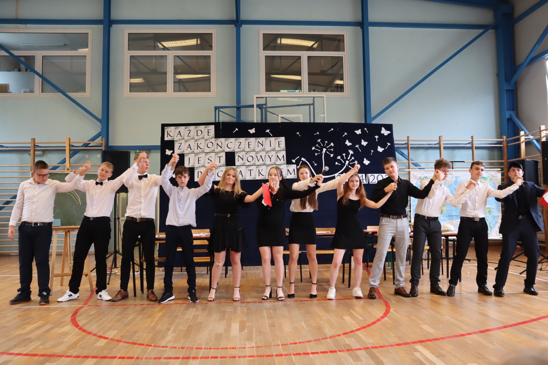 Ważnym punktem uroczystości było wystąpienie uczniów klasy VII, którzy pożegnali tegorocznych absolwentów. Siódmoklasiści przygotowali wzruszające i jednocześnie pełne humoru przedstawienie oraz złożyli starszym kolegom i koleżankom serdeczne życzenia sukcesów w dalszej nauce, spełnienia marzeń oraz odwagi w podejmowaniu nowych wyzwań.