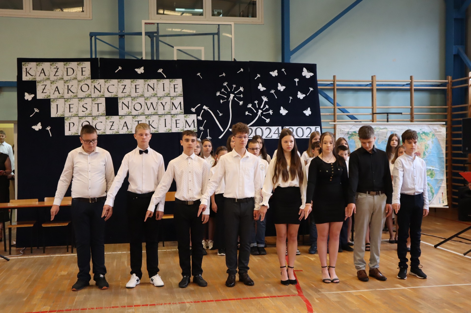Dnia 27 czerwca 2025 roku w naszej szkole odbyło się uroczyste zakończenie roku szkolnego. W wydarzeniu wzięli udział uczniowie, nauczyciele, dyrektor, rodzice oraz zaproszeni goście.