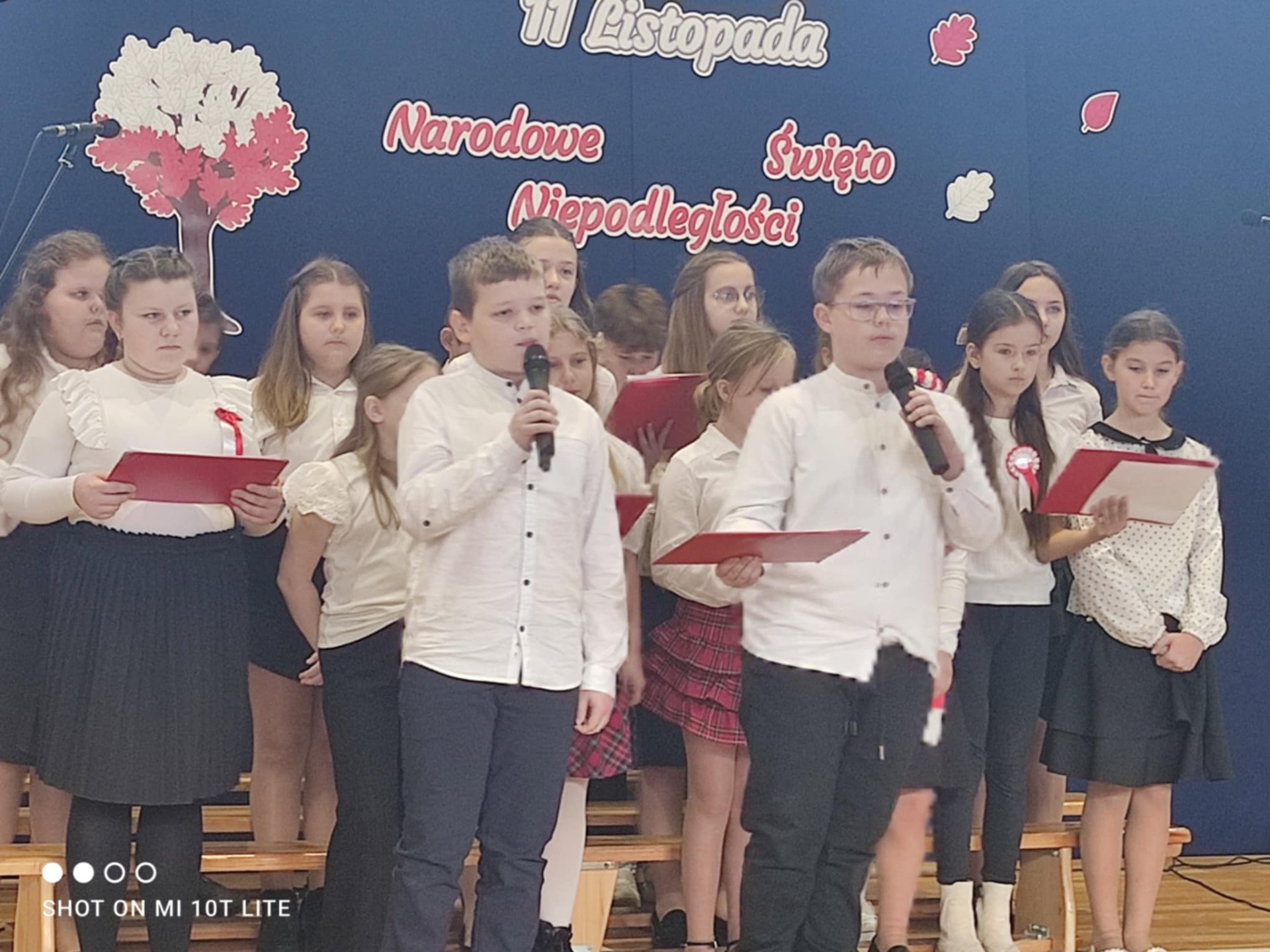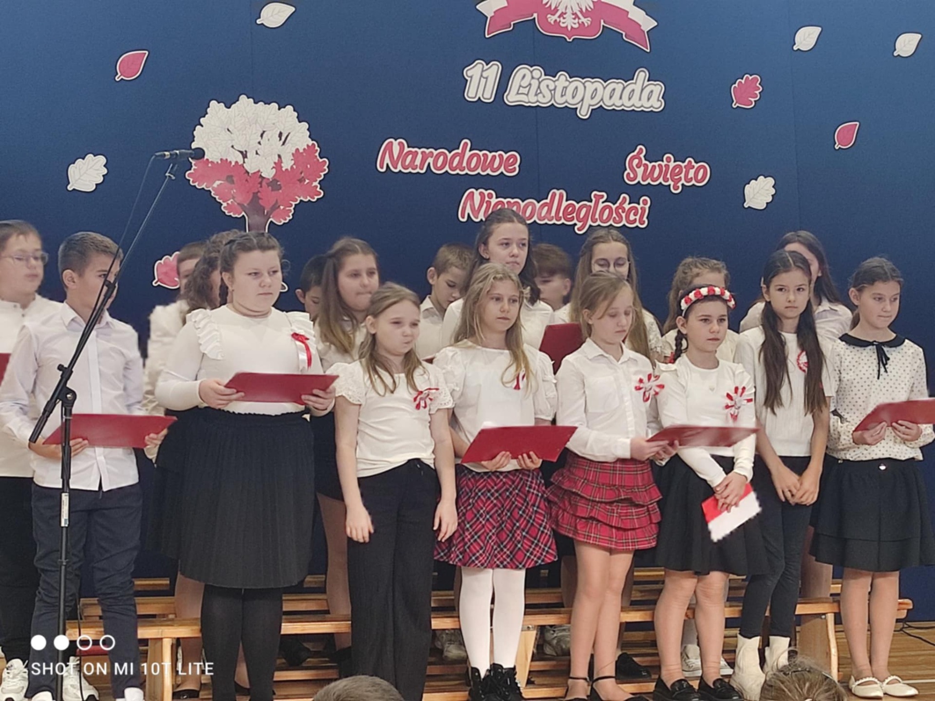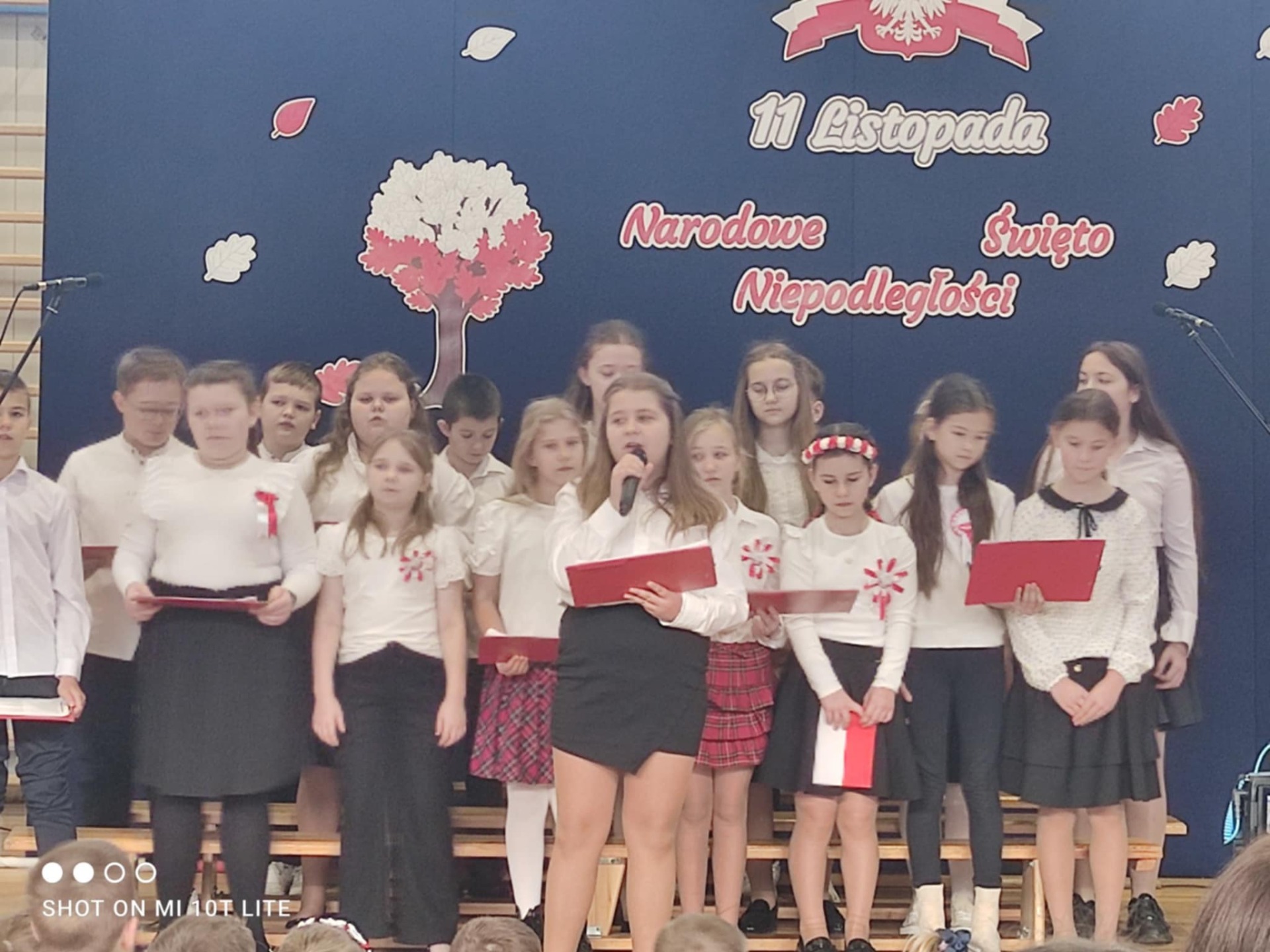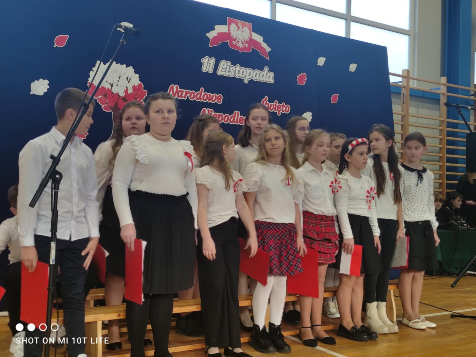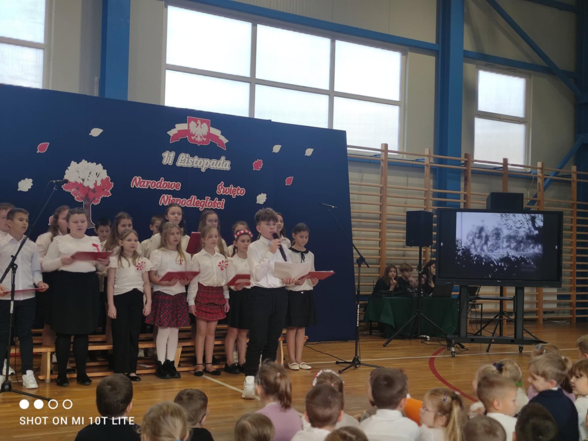 Podczas apelu uczniowie w piękny i wzruszający sposób przypomnieli trudną drogę Polaków do wolności po 123 latach zaborów. Występ uświetniły wiersze patriotyczne i pieśni narodowe ukazujące wydarzenia historyczne związane z walką o niepodległość. Na sali panowała podniosła atmosfera, a uczestnicy z dumą i szacunkiem oddali hołd wszystkim, którzy walczyli o wolną Polskę.