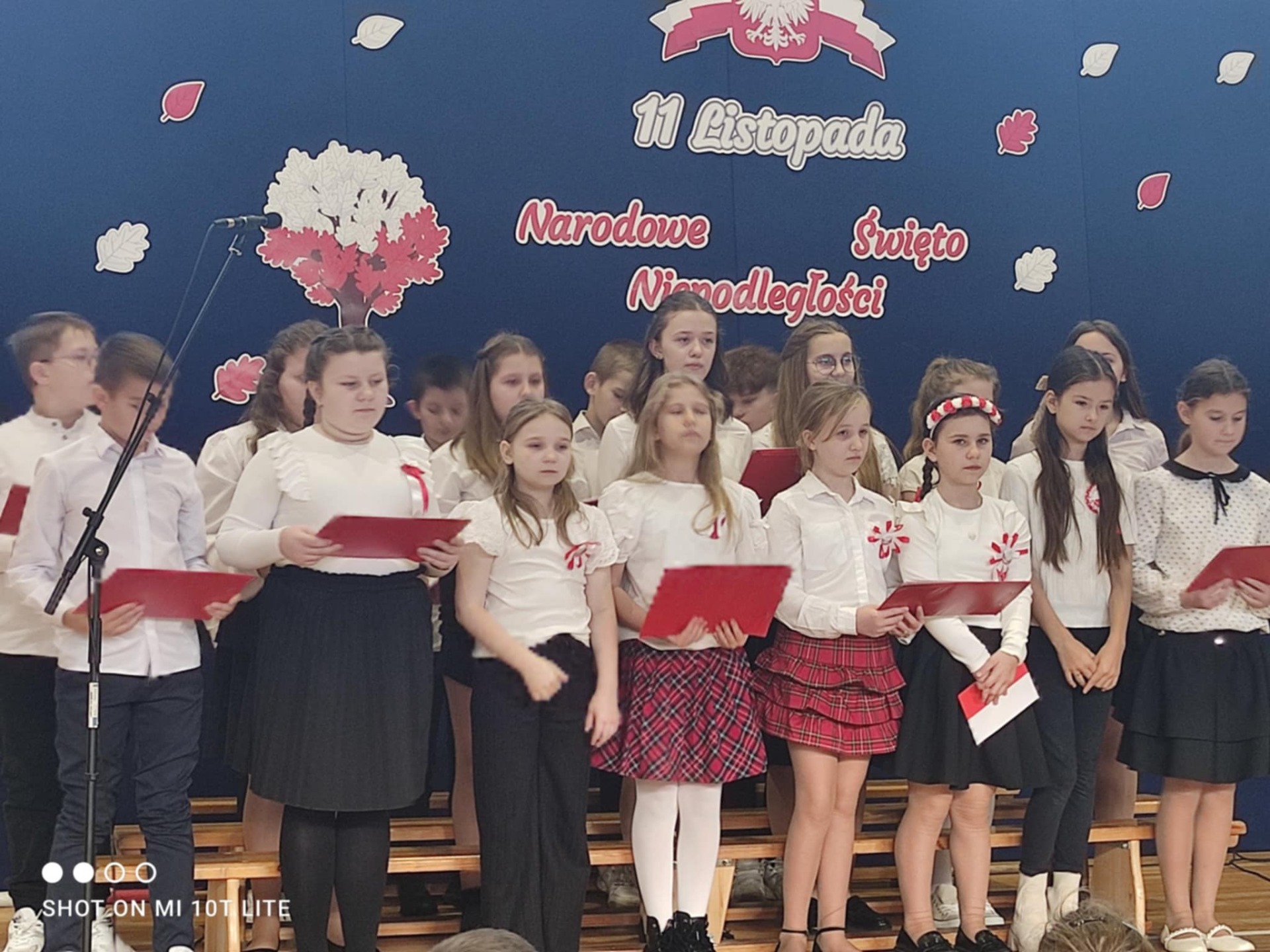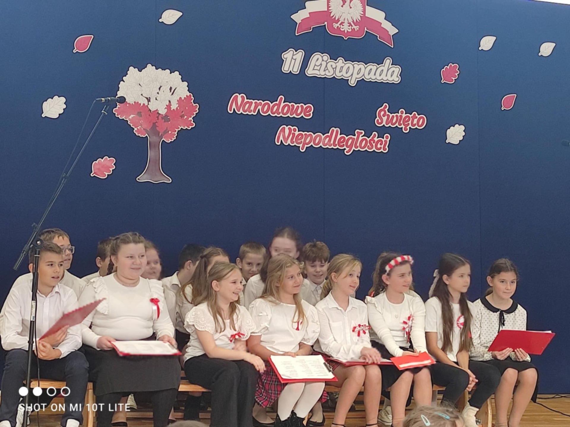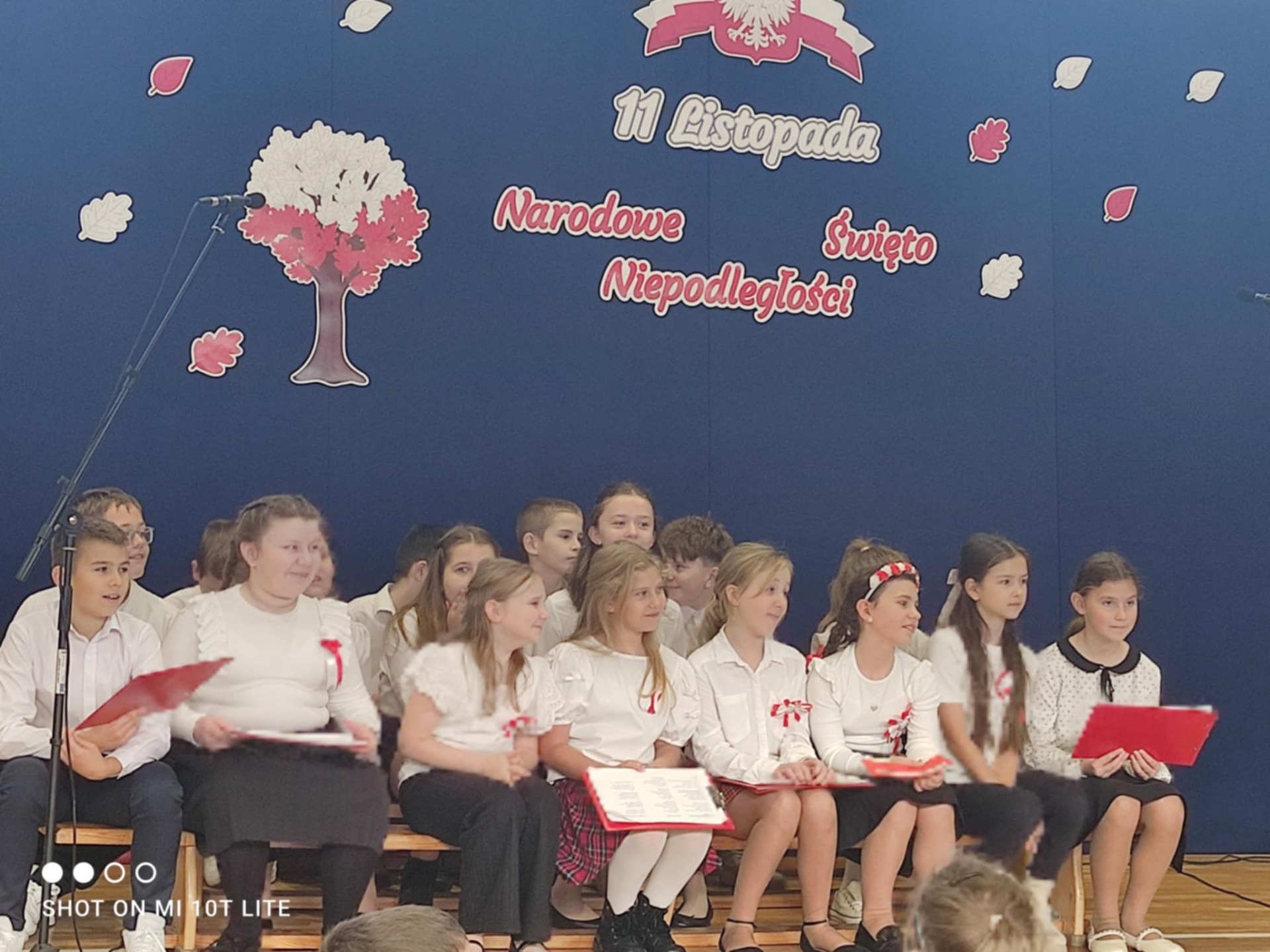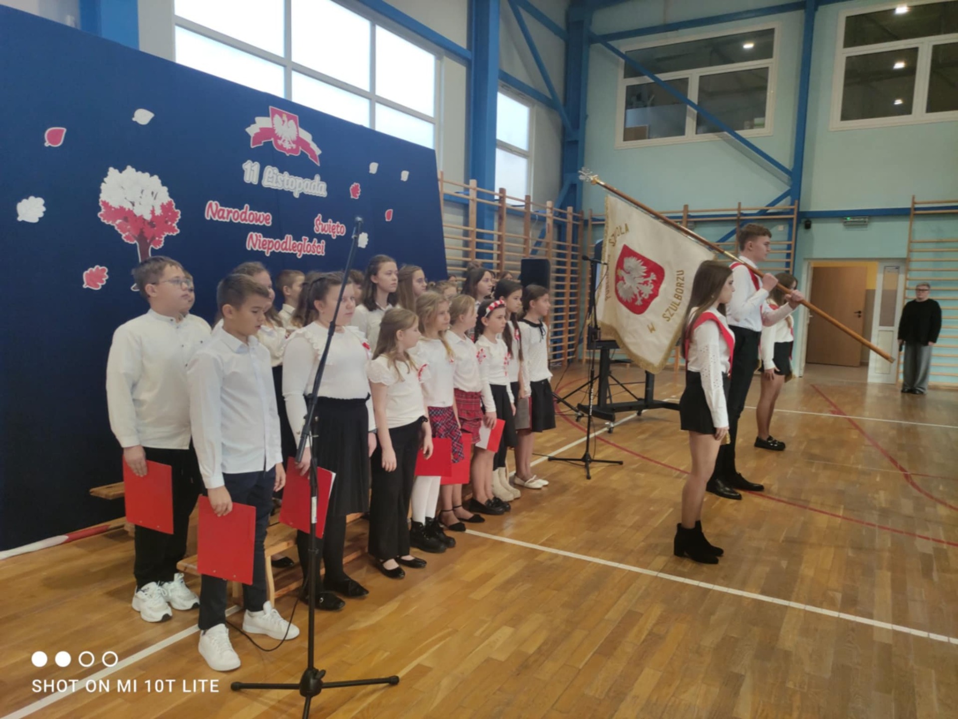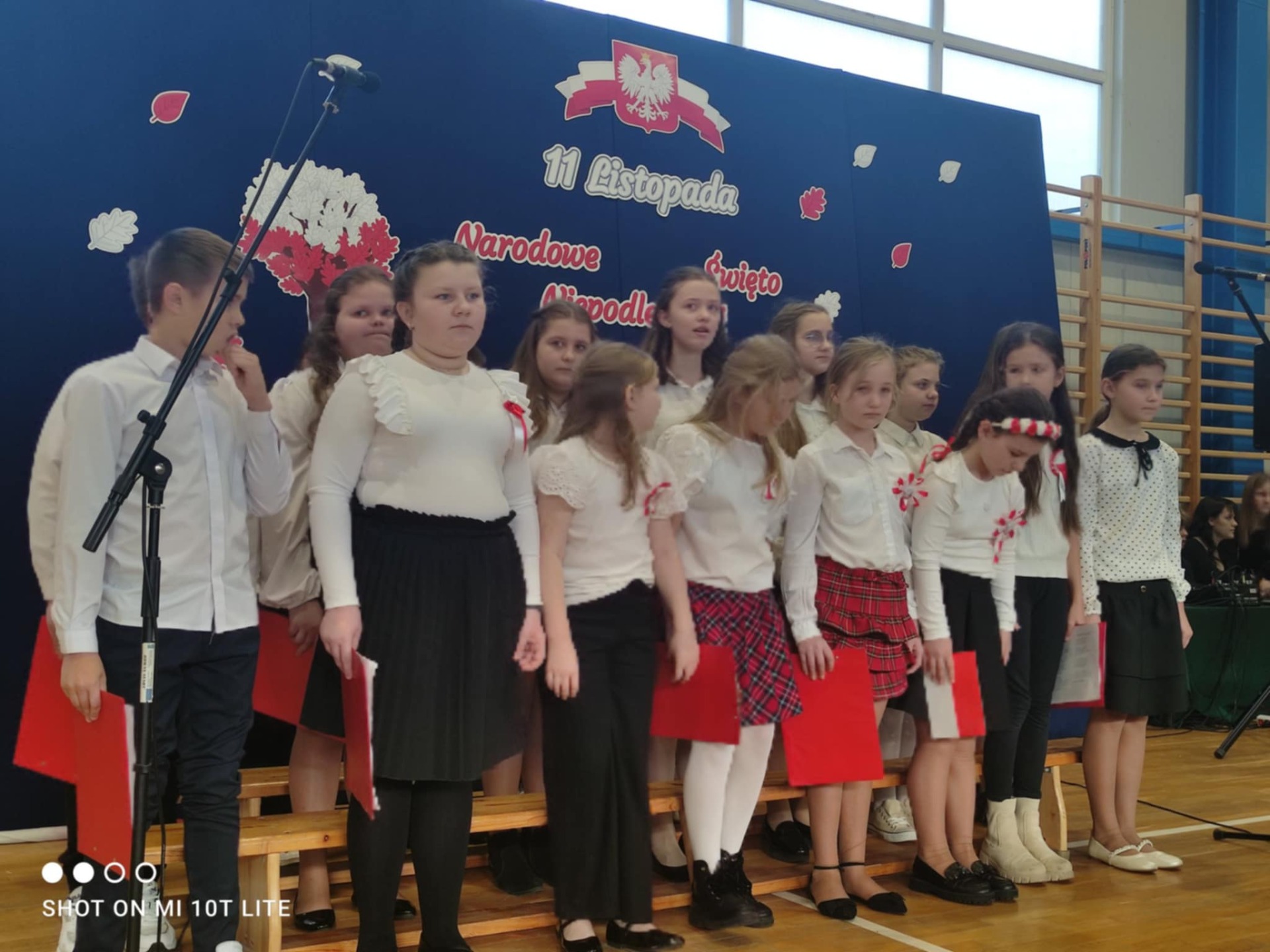 Podczas apelu uczniowie w piękny i wzruszający sposób przypomnieli trudną drogę Polaków do wolności po 123 latach zaborów. Występ uświetniły wiersze patriotyczne i pieśni narodowe ukazujące wydarzenia historyczne związane z walką o niepodległość. Na sali panowała podniosła atmosfera, a uczestnicy z dumą i szacunkiem oddali hołd wszystkim, którzy walczyli o wolną Polskę.